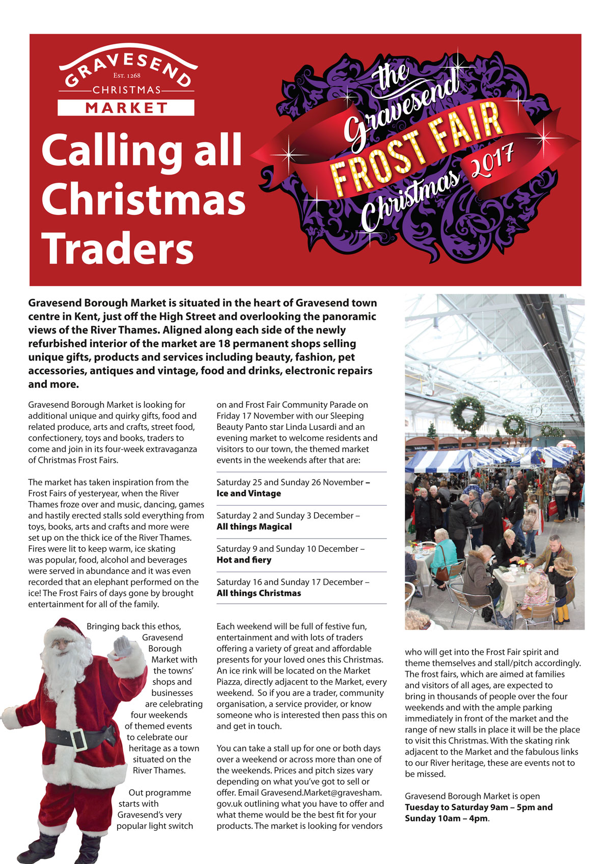 Gravesend Borough Market is on the hunt for traders to come and join in its four-week extravaganza of Christmas Frost Fairs