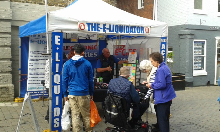I started at the top end of the market on Wote Street which leads down to the shopping precinct. The first stall I came across was the ‘E-liquidator’, specialising in e-cigarette products. From Selsey, some 40 miles away, the ‘E-liquidator’ has been trading on Basingstoke’s Wednesday market for 7 months. He has regular, repeat business, helped by a promotion that he has run.