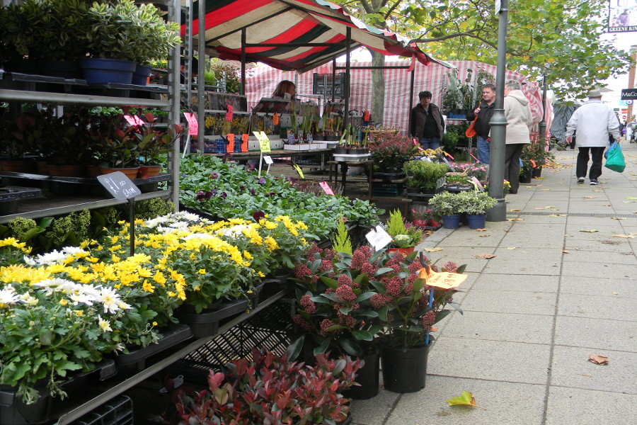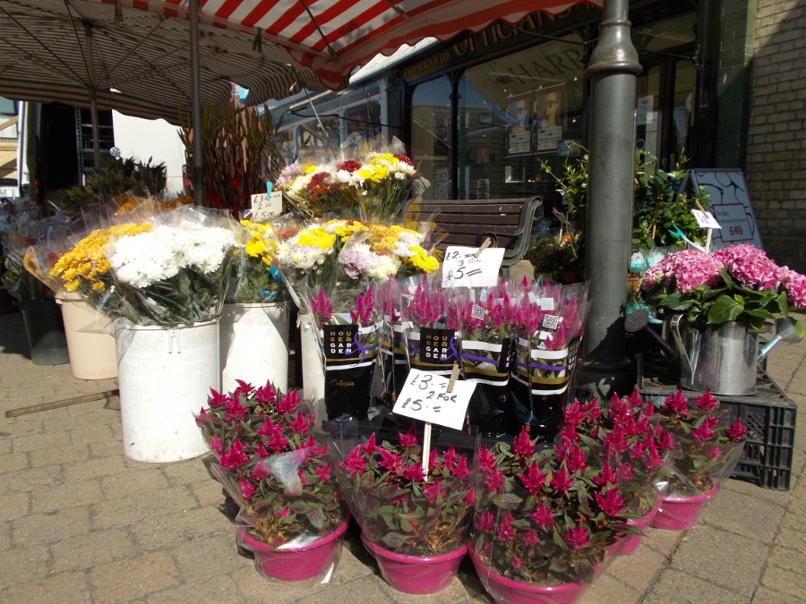 Les Ward is one of the longest serving traders and he has an impressive regular customer base for his family owned fruit and vegetable business. His grandfather started the business in 1938, with his father taking over in the 70s. In 1995 Les took over with his cousin and as well as operating the market stall, they have three shops in Histon, Cottenham and Cambridge. His stall has several legs running off the main tables, to help with congestion and he tries to stock as much seasonal and local produce as he can. As is the case with many traditional greengrocers, the presentation of his stall is very important and all his produce was well presented and looked to be of the best quality. As well as being a greengrocer, he also sells cut flowers, which complements the offerings of the plant stall.