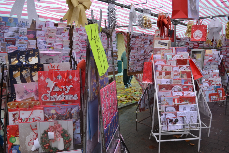 Geoff and Julie at the Cardbox were limited to the range of stock they could display because of the weather but they still had a vast array of Christmas cards, bags and paper available for customers to purchase. They have been selling cards for 25 years and before that, fabric. They work six days at markets across the neighbouring counties but have a particular fondness for Biggleswade. Geoff commented, ‘We have very loyal customers here, this is a nice town and the people are very friendly, we often get gifts dropped off to us at Christmas.’