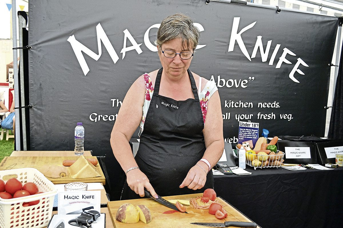 There was plenty of sampling and demonstrations going on in the food section of the marquee, whether it was nibbling at cheese or fudge or watching knives cut through swedes like they were butter, a hand-held crumb buster or garlic being grated on a plate!