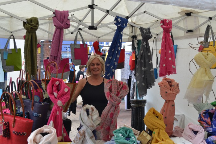 Jenny Jones clearly loves what she sells and this is apparent in the presentation of her colourful bags baskets and scarves. The baskets are fair trade and the shopper and felt bags handmade, but all very competitively priced.
