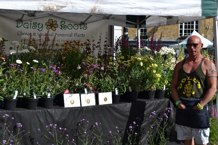 Competing in the chutney challenge is jam maker Chris of Heavenly Homemade. Unlike Barbara, she works full time and the market is a hobby for her. This was only her second outing to Hertford but she has been selling her jam and chutney at other local markets and was delighted to get an email about her chutney after her first week here. Trumping all in the accolade stakes is a small nursery called Daisy Roots that specialises in cottage garden perennials. This year they have won three RHS Silver Gilt awards, with one coming from Chelsea and owner Steve had these proudly displayed on his stall.