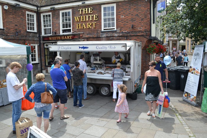 One of these was Claydon’s, who have been selling fresh fish in Hertford for 80 years. John Claydon decided to close the shop and try the market ten years ago and has customers queuing to buy his produce throughout the day.