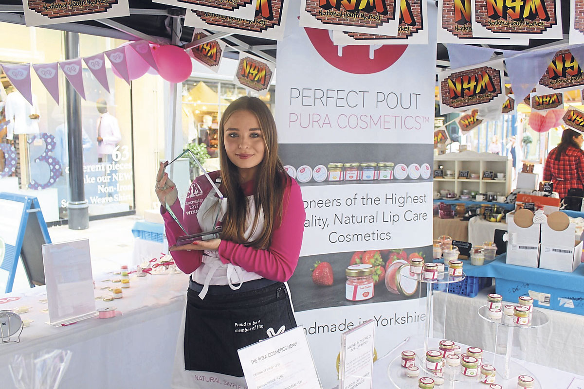 Rose Dyson of Pura Cosmetics was crowned Young Trader of the Year, winning £500, a year’s free NMTF membership and free trading opportunities on two Christmas Markets in Greater Manchester. Four other traders were highly commended and won £100 and the opportunity to trade at one of The Makers Market’s Christmas markets in the city. They were Lauran of Signature Print Design, Abbie form Mamma Made It, Charlotte of Handmade Cosmetics and Abby from That Charming Shop.