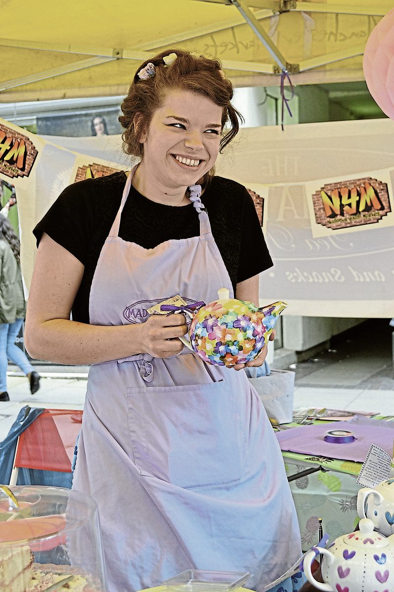 Helen (24) is the owner of The Mad Hatter’s Tearoom in Southport Indoor Market, which she began three years ago. She graduated with a degree and no work experience and after repeated job application ‘knock-backs’, she set up the tea rooms which is now her full-time job. Despite admitting that she works too much, she told MTN: “I wouldn’t change it for the world.” She took part in NYM last year and loved it so much, she jumped on the opportunity to re-apply. Although cakes are her main line, she also hand paints ceramics. She was wrapping this teapot up for a customer. See her Facebook page: www.facebook.com/madhatterstearoomsouthport/