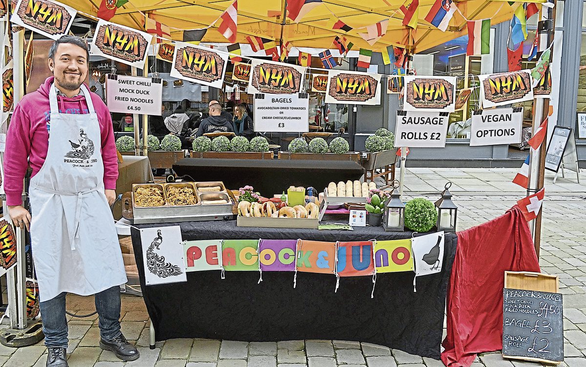 Peacock & Juno are vegan food purveyors, preparing and cooking many of the dishes themselves. The company has been trading for a year and is a regular at the Manchester Youth Markets and can also be found at various food and drink festivals. At the market, they had two types of filled bagel, mock duck noodles and ‘sausage’ rolls. I really wanted to try the noodles but with a camera and note pad in tow, it wasn’t a viable option to walk around and eat, so I tried a sausage roll; pretty good too, a bit of mustard and it would have been bang on! Both Fidel (27, pictured) and his partner work full time and so this is a weekend hobby. Find them on Facebook: @PeacockAndJuno