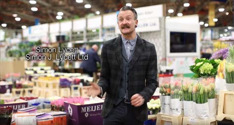 The video features the following Flower Market customers: Kally Ellis, McQueens; Shane Connolly, Shane Connolly & Co; Simon Lycett, Simon J. Lycett Ltd; Jessica Simmonds and Chikae Okishima-Howland, Okishima & Simmonds; Kristina Cousen, The Blacksmith’s Daughter; Nik Southern, Grace & Thorn.