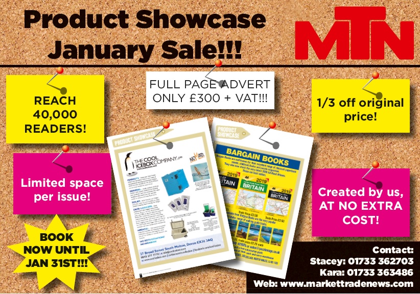 Market Trade News January 10, 2019 Market Trade News are pleased to announce a special offer for a Product Showcase Page in the Magazine, available to any Wholesalers. Details of the offer, which is available for a limited time, can be found on the image below:- Sharing is CaringClick to share on Facebook (Opens in new window)Click to share on Twitter (Opens in new window)Click to share on Pinterest (Opens in new window)Click to share on Tumblr (Opens in new window)Click to share on Reddit (Opens in new window)Click to share on LinkedIn (Opens in new window)Click to print (Opens in new window)Like this:Like Loading...