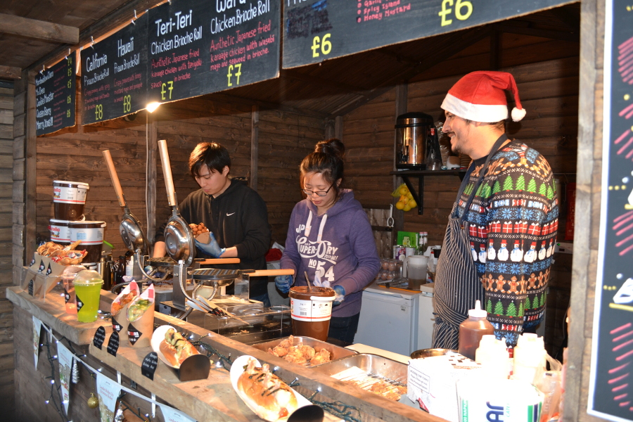 Traders were supplied with a lockable 3×3 log cabin, decorated with garlands and fairy lights; a personalised wooden sign and electricity. On site security and CCTV was also provided and food traders were given a chalk board on which to display their menus.